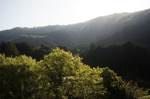 Gently rolling mountain ranges and the bright, fresh greenery of broad-leaved trees. Deep valleys and ridgelines that rise in layers.